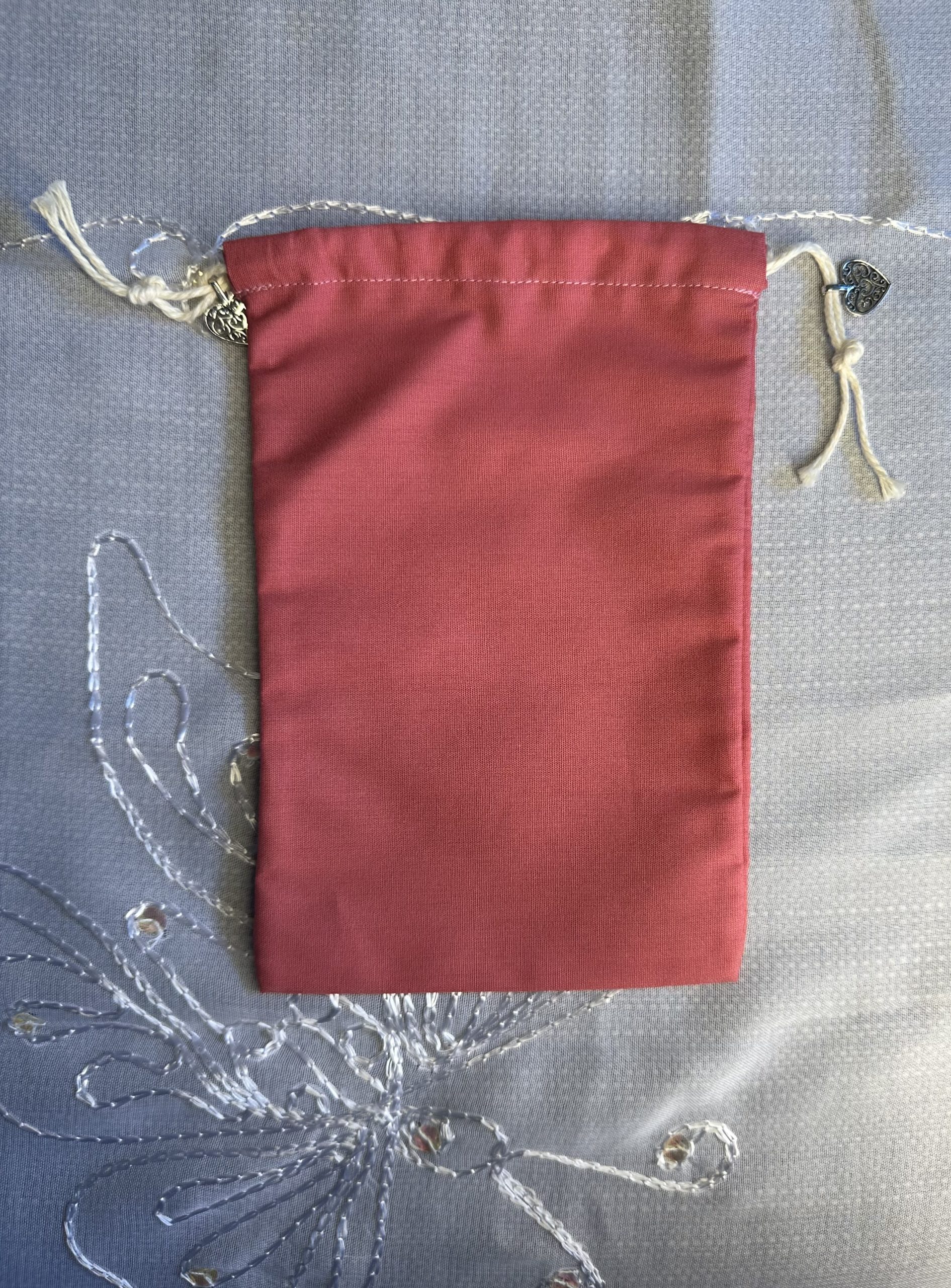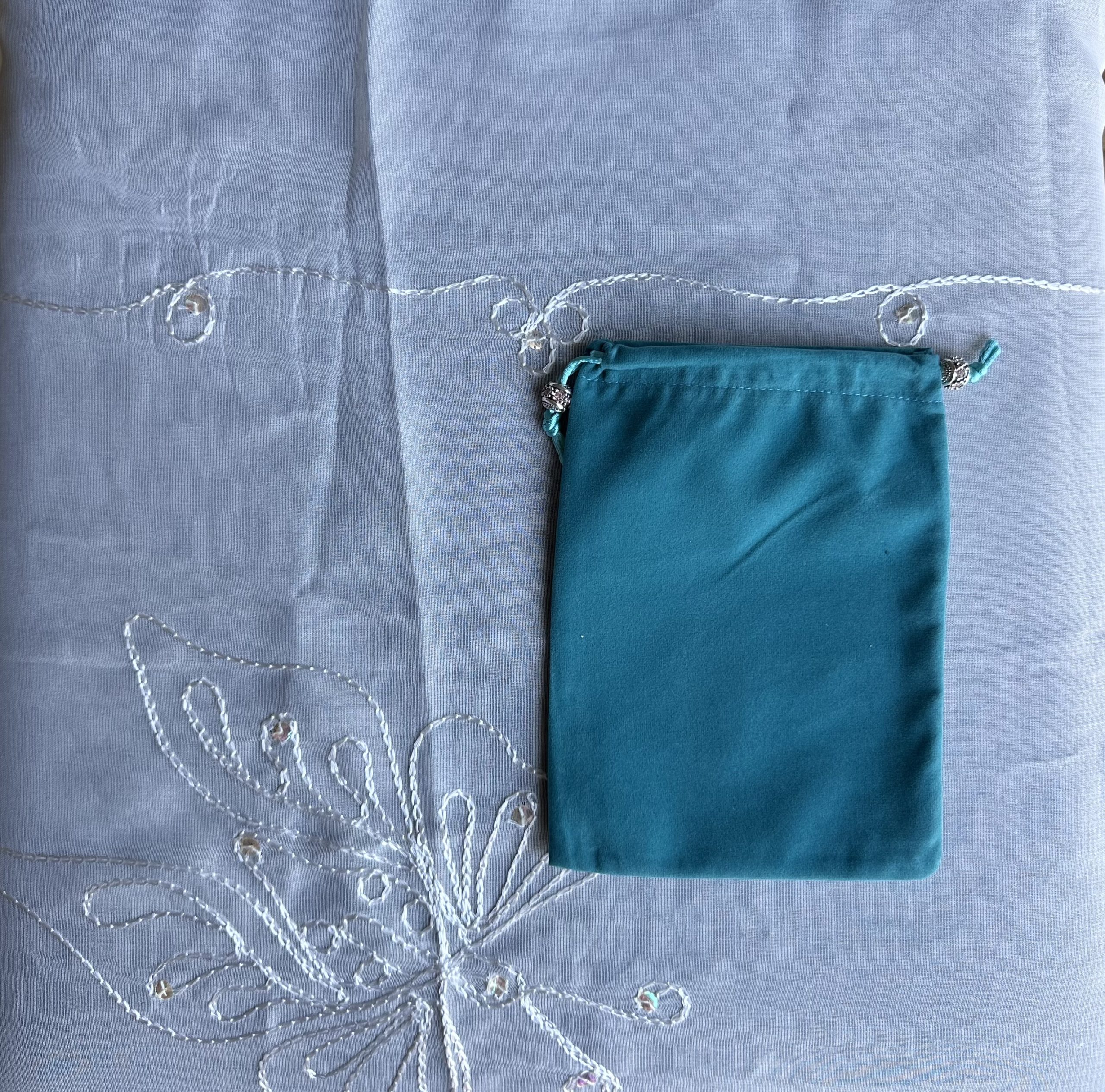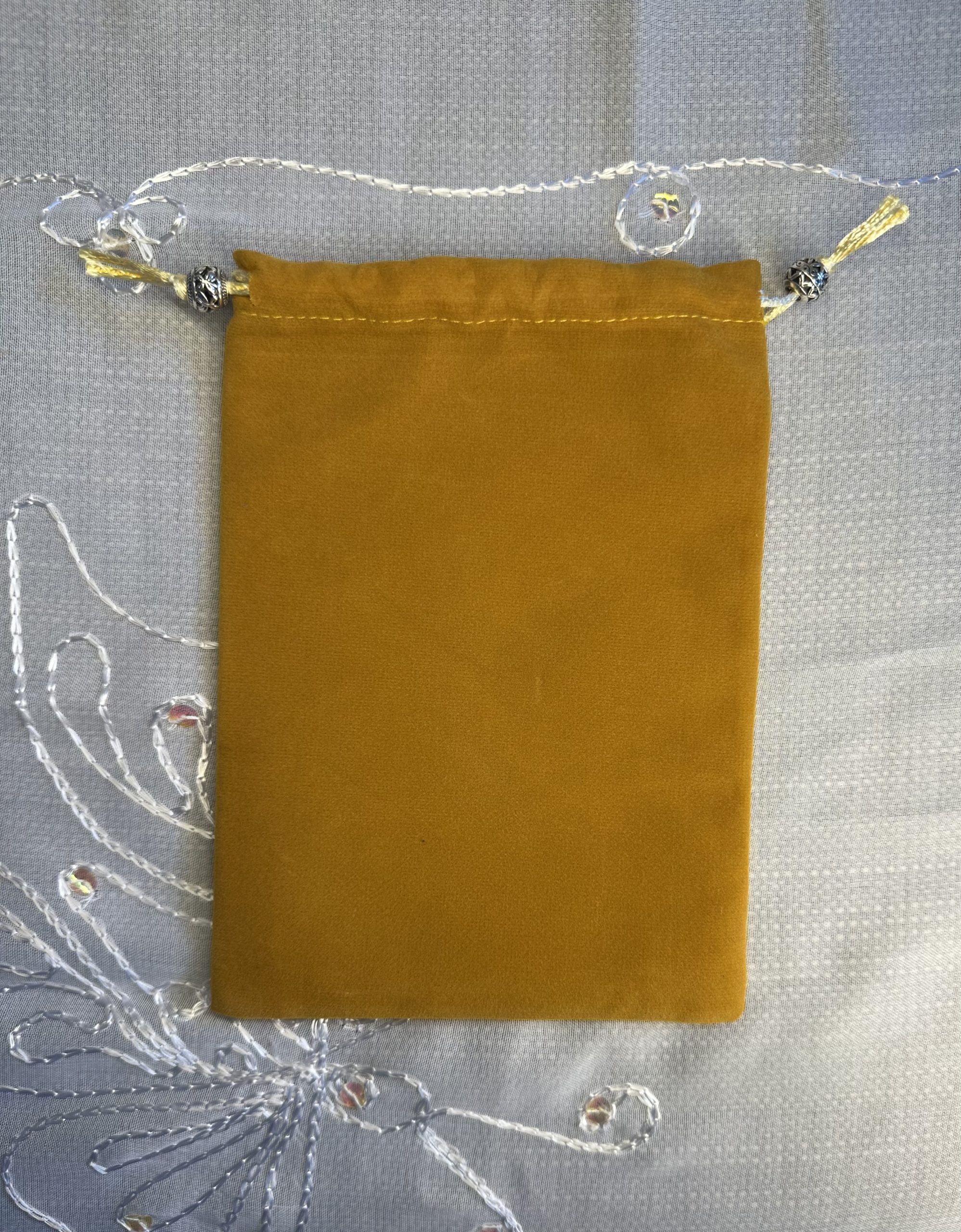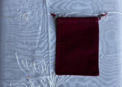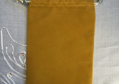 - Couleur de la pochette : Vous pouvez choisir la couleur de la pochette de l’oracle qui vous intéresse. Si vous n’avez pas de préférence, je choisirai pour vous. Il existe des pochettes en velours ou en coton (ces derniers sont cousus par mes soins).